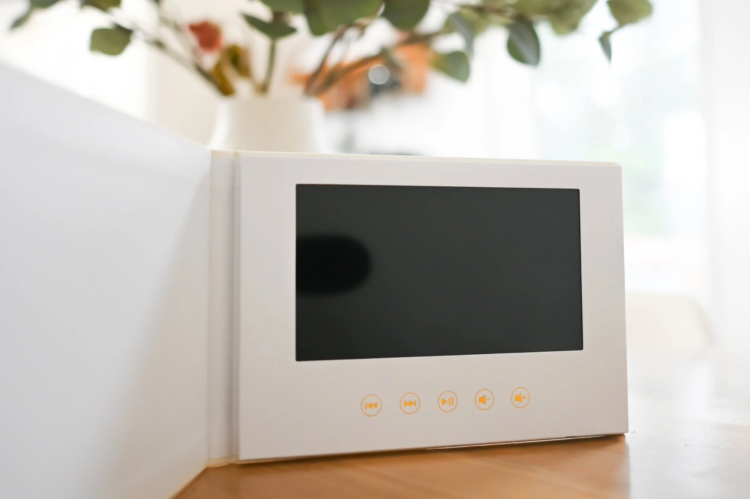 Enhance your experience with this optional add-on: a beautifully crafted memory book that lets you revisit your cherished videos anytime you like. Perfectly designed to sit on your coffee table, this book allows you to relive the special moments whenever the mood strikes. Your guests will love flipping through it and sharing in the joy all over again when they come to visit.